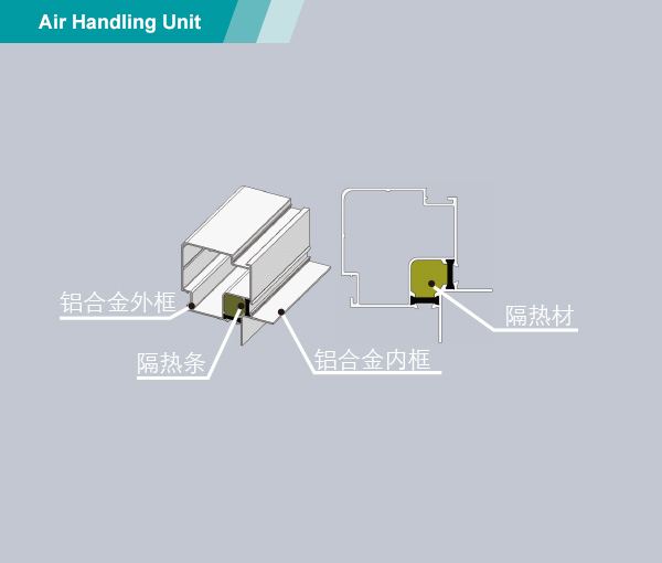 bevictor伟德新一代MAH组合式空气处理机,艾洛斯(Aiolos)系列,采用防冷桥铝合金框架结构设计,面板与框架为压扣连接方式。