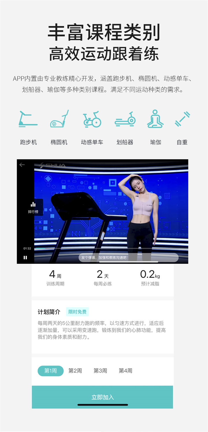 舒华I5智能家用跑步机是由舒华体育联合中国体育科学学会、上海体育大学运动科学学院教授陆大江等权威机构、专家共同研发设计。独特之处在于它结合国际科学跑步研究理论,能够针对不同用户进行运动能力测试,并根据测试结果生成因人而异的有氧运动处方。这意味着每个用户都能得到一个适合自己的运动方案,从而更好地达到运动效果。这一创新技术可以确保用户在运动过程中能够保持在最佳的区间状态,从而提高运动安全性和有效性。