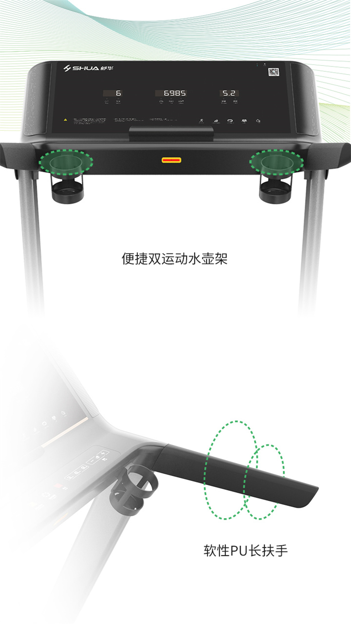 泛亚电竞推荐健身器材-舒华商用电动跑步机SH-T6500拥有10.1寸IPS高清触摸屏、Z型动感时尚外观设计、70×150mm精钢立柱机身、F级高效静音马达、520mm商用豪华跑带和35mm双层全跑台减震跑板等优势,让您享受科学跑步。